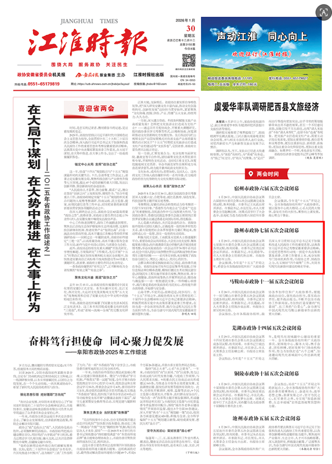 会议强调,今年是“十五五”开局之年,希望全市各级政协组织和广大政协委员深入学习贯彻习近平总书记关于加强和改进人民政协工作的重要思想,认真落实习近平总书记考察安徽重要讲话精神,自觉把思想和行动统一到党中央决策部署及省委、市委工作要求上来,充分发挥专门协商机构作用,尽政协之责、倾政协之力,扎实做好“四个凝聚”工作,共同书写现代化新滁州建设的精彩华章。