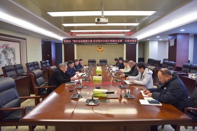 12月22日下午,市政协召开“做好活化利用文章 促进滁州古城文旅融合发展”月度协商会。市政府副市长刘江华出席会议并讲话,市政协副主席焦义朝主持会议。市政协文化文史和学习委、相关单位和部分企业代表参加会议。