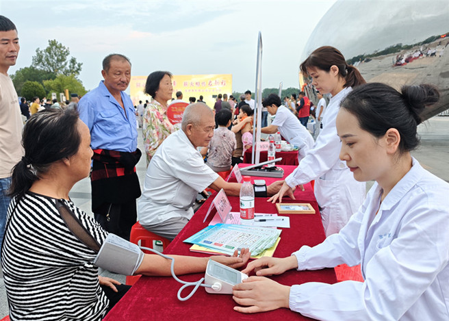 义诊现场,来自心内科、中医科、妇科、皮肤科等科室的医疗专家为社区群众开展检查听诊、测量血压等医疗服务,耐心解答他们的问题,细心交代了日常注意事项和相关保健知识。活动累计受益群众100人次,发放宣传资料200余份。