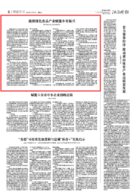 发展绿色食品产业,事关乡村振兴、事关农业农村现代化。近年来,滁州市委、市政府高度重视农业强市建设,紧扣“长三角绿色农产品生产加工供应基地”定位,抓粮食稳产保供、抓加工转型升级、抓产业“双招双引”,推动绿色食品产业呈现“基础牢、特色显、后劲足”的良好态势。